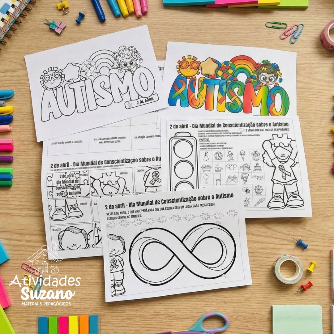 Este material foi desenvolvido especialmente para o Dia Mundial de Conscientização sobre o Autismo (2 de abril), trazendo atividades prontas que ajudam as crianças a compreenderem, respeitarem e valorizarem as diferenças.