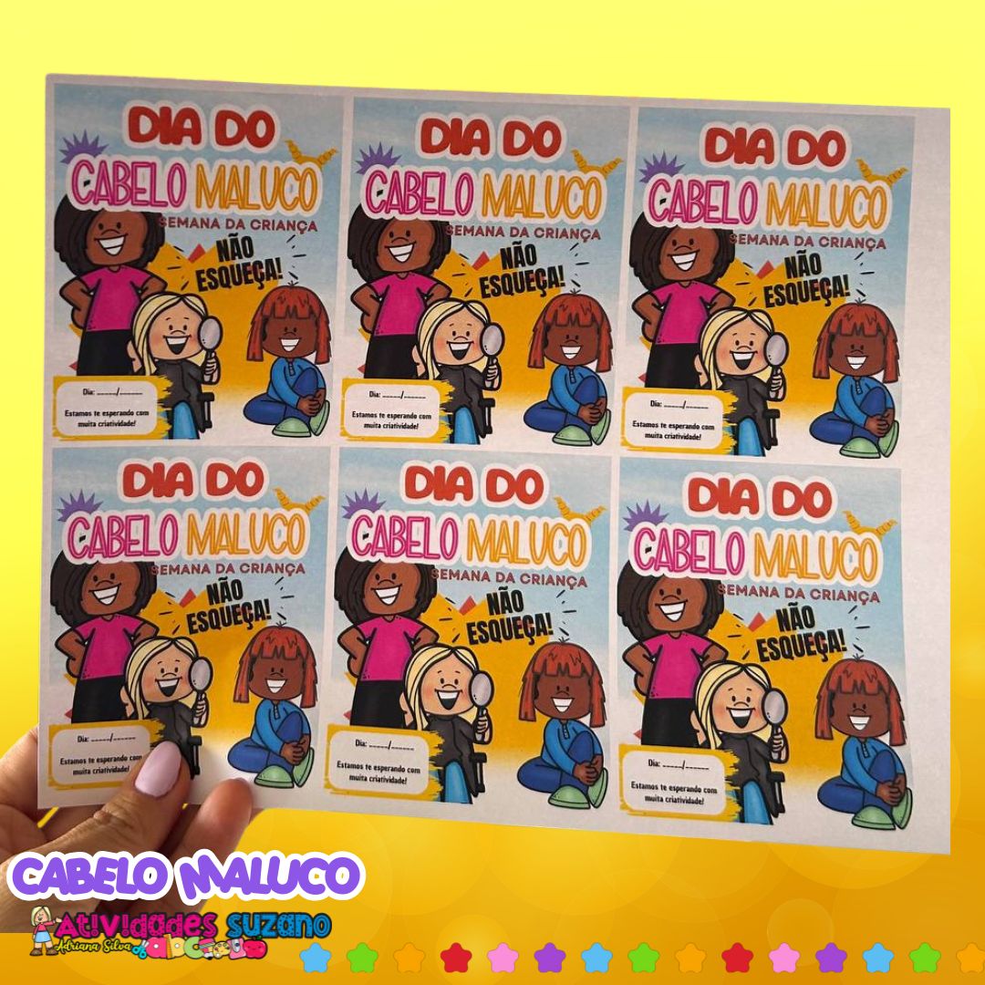 👉 Perfeito para a Semana da Criança, esse kit facilita a organização do Dia do Cabelo Maluco e transforma a data em uma experiência divertida e memorável para toda a turma.