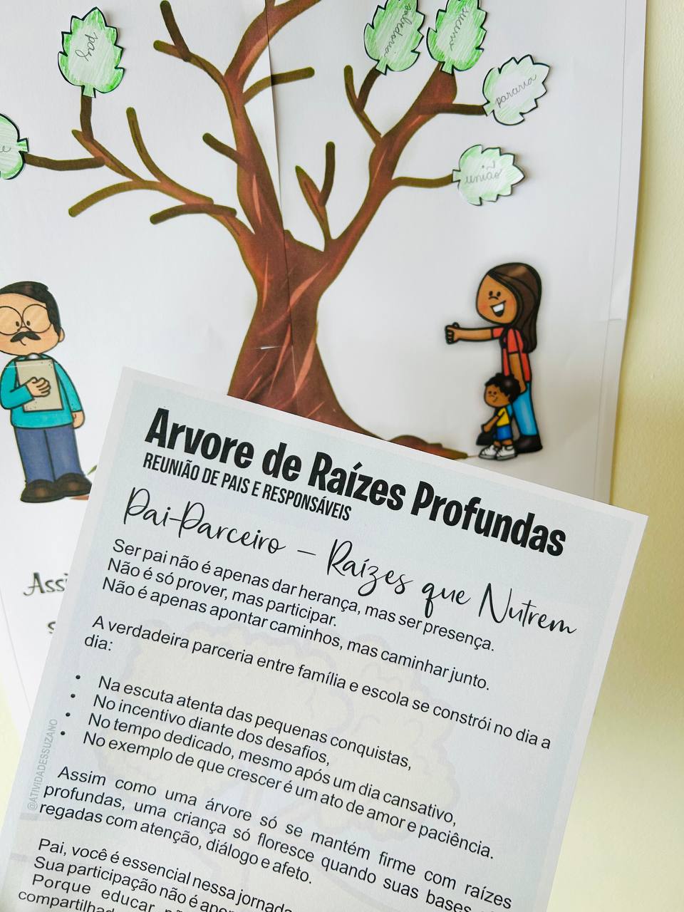 • Arte lúdica do tronco e raízes para os pais colarem suas folhas.