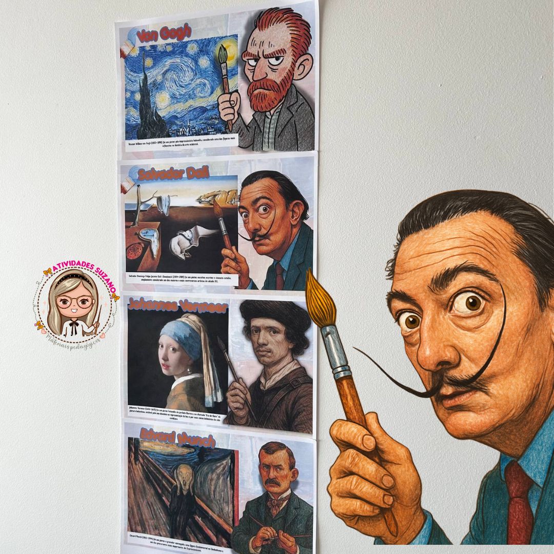 Receba 4 lindos cartazes digitais (um para cada pintor principal) com imagens de alta qualidade das obras, prontos para serem impressos e utilizados para enriquecer o visual da sua sala de aula ou ambiente de estudos.